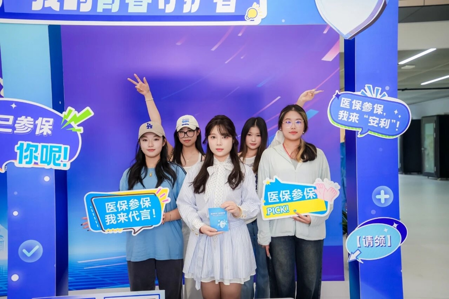 活动现场布置有主背景板、政策咨询区、互动体验区、“我为参保代言”拍照打卡区及医保政策宣传展板区,全方位营造了沉浸式医保宣传氛围。学生们积极参与互动游戏、在背景板前和拍照打卡区参与拍照分享社交媒体、认真阅读宣传展板区展示的医保政策内容并就相关问题进行咨询配资门户网官网首页,活动现场氛围极其热烈。